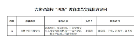 日前,由吉林省教育厅组织开展的全省普通本科高校“四新”教育改革实践优秀案例评选活动结果揭晓,我校申报的《需求导向,聚焦内涵,打造学科专业高质量发展新格局--吉林建筑科技学院新工科建设经验》案例,作为学校新工科建设优秀成果产出,成功获批。