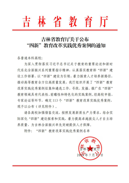 此次案例评选工作旨在深入学习贯彻习近平总书记关于教育的重要论述和新时代东北全面振兴系列重要指示精神,全面落实立德树人根本任务,深化“四新”建设改革,推广典型经验和特色做法,助力本科教育提质创新发展,提升高等教育服务创新发展能力。在接到省教育厅评选通知后,学校积极组织开展申报工作,引导案例团队不断总结经验、凝练特色,最终顺利完成了申报推荐工作。