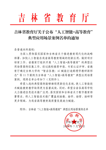 近年来,学校全面贯彻落实国家和吉林省教育数字化战略部署,积极应答数字化、智能化时代发展需求,推动人工智能与教育教学的深度融合发展,引导广大师生主动适应人工智能与大数据等新技术变革,利用智能技术助推人才培养模式、教学方法和教学过程管理的改革与创新,人才培养质量持续提升。