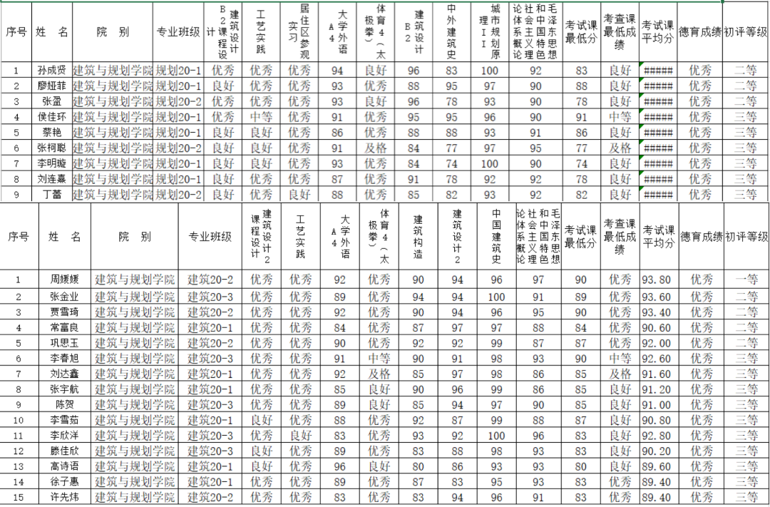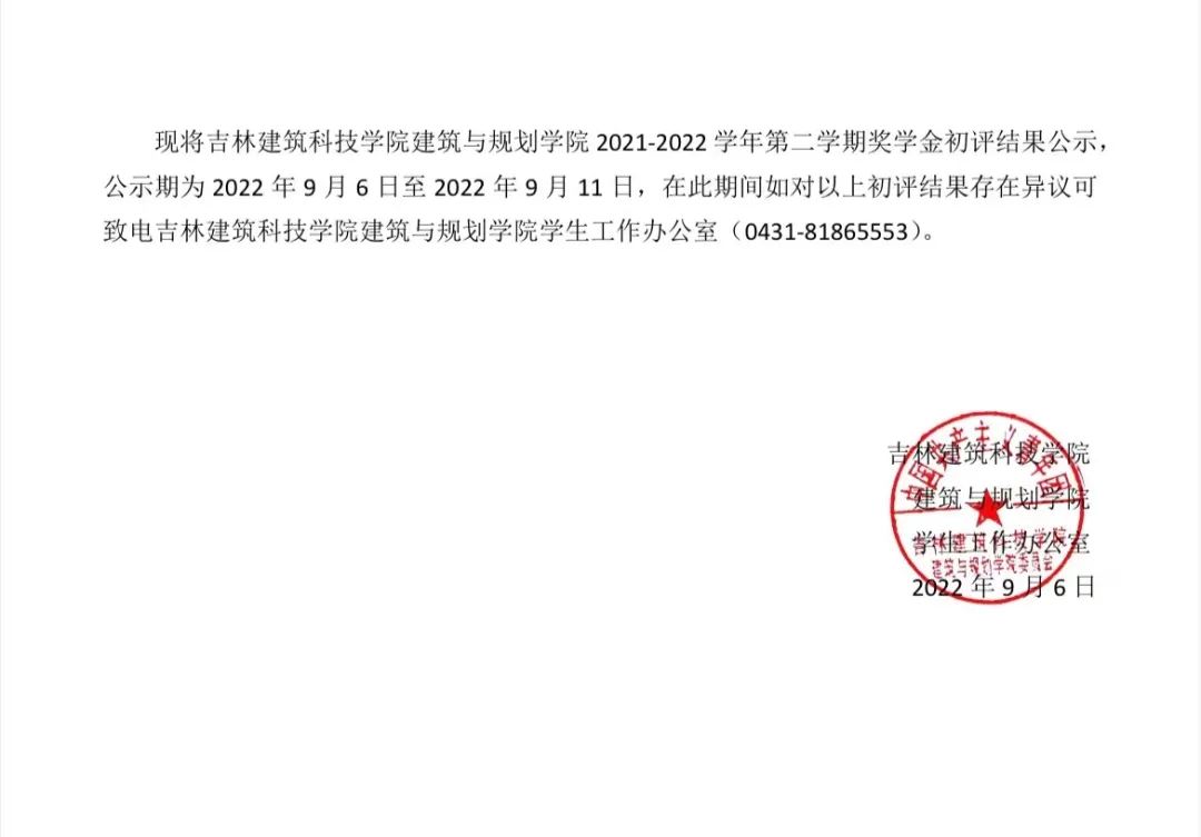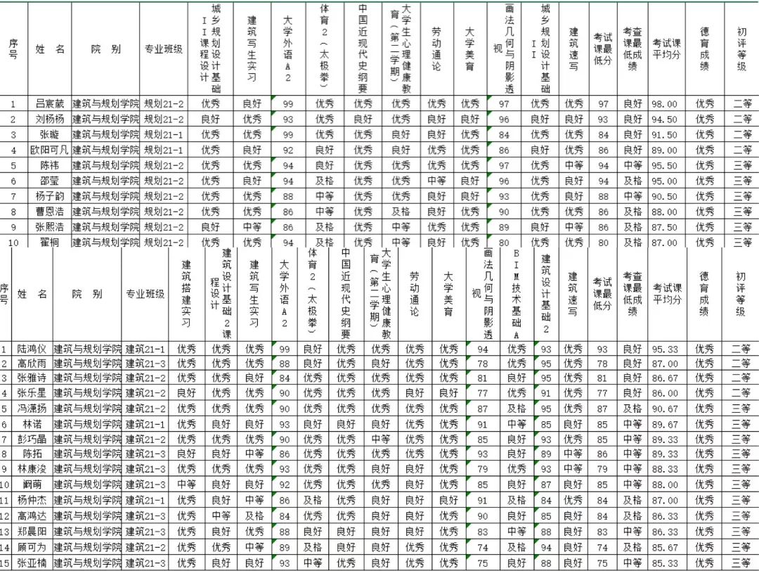 】建筑与规划学院2021-2022学年第二学期奖学金公示表