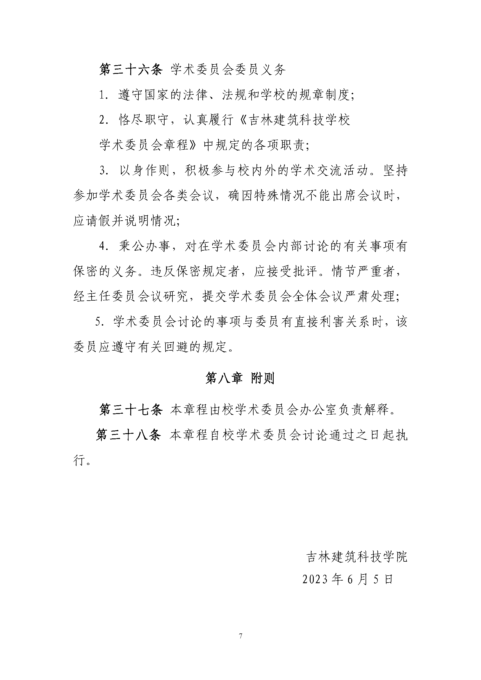 】吉林建筑科技学院学术委员会章程(校字[2023]45号)