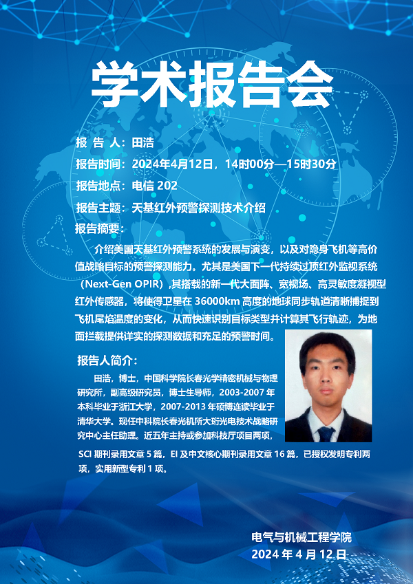 】电气与机械工程学院举办“天基红外预警探测技术介绍”学术报告会