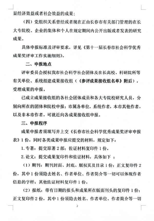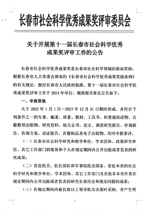 】关于开展第十一届长春市社会科学优秀成果奖评审工作的公告