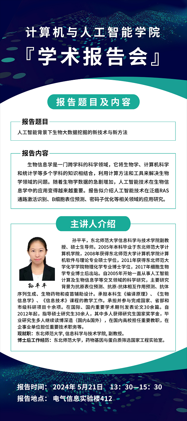 】计算机工程与人工智能学院举办“人工智能背景下生物大数据挖掘的新技术与新方法”学术报告会