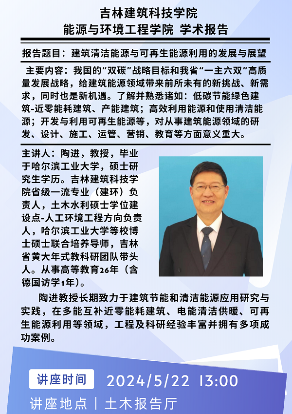】能源与环境工程学院举办“建筑清洁能源与可再生能源利用的发展与展望”学术报告