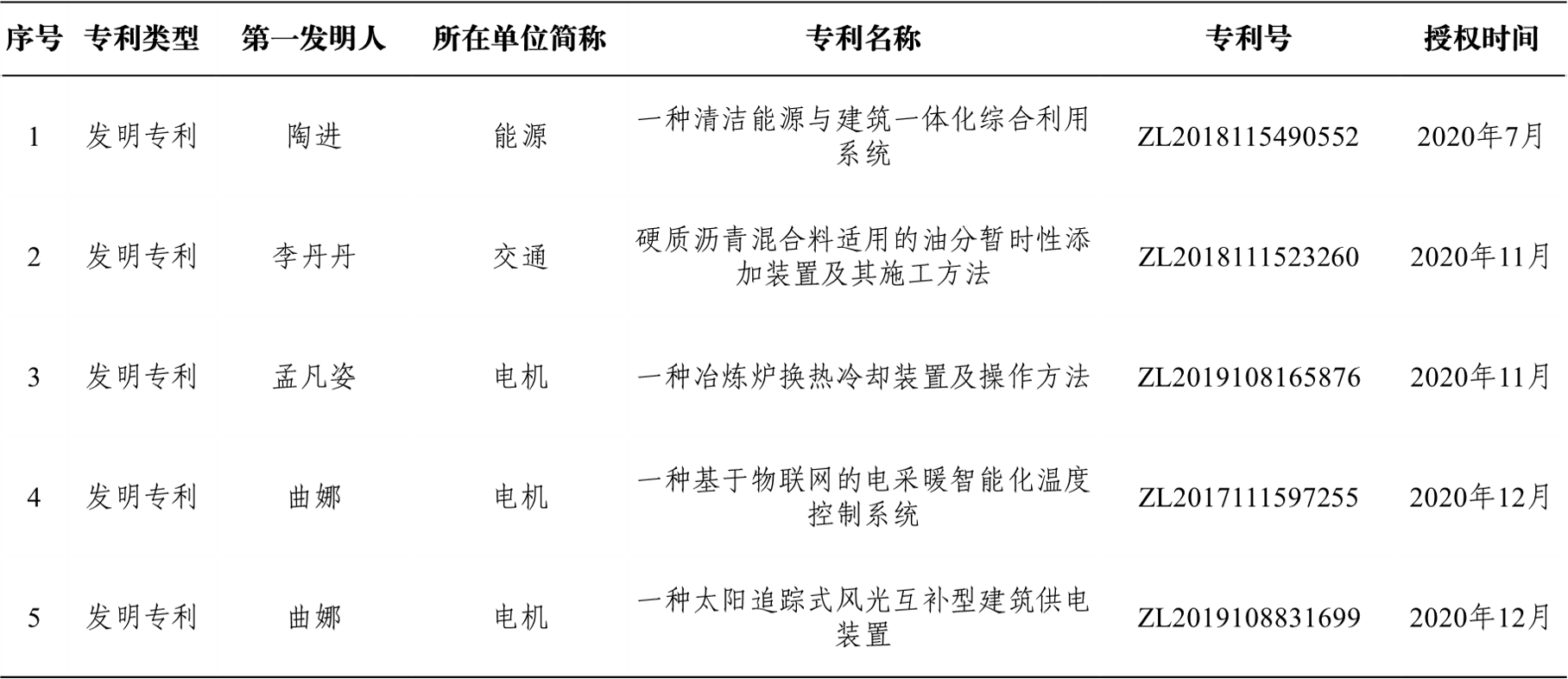 】2020年我校授权发明专利一览表