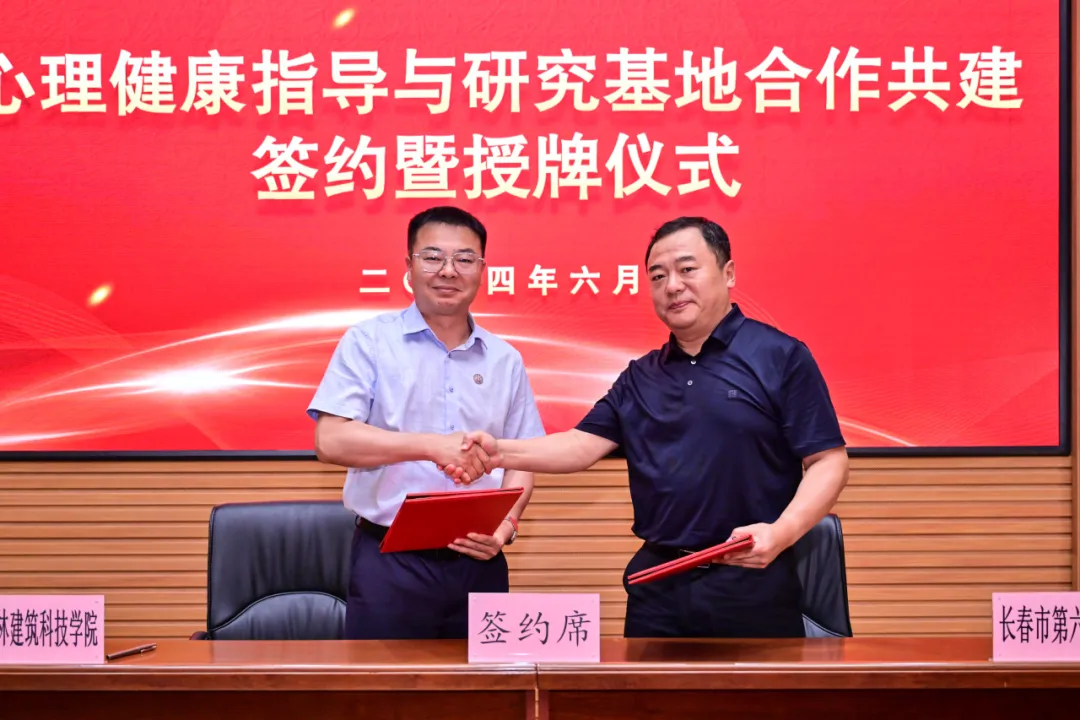 接下来,吕海升校长与杨洪凯书记签署了《吉林建筑科技学院与长春市第六医院合作共建协议》,并共同为基地揭牌。这标志着双方正式建立合作关系,共同开启学生心理健康教育的新篇章。