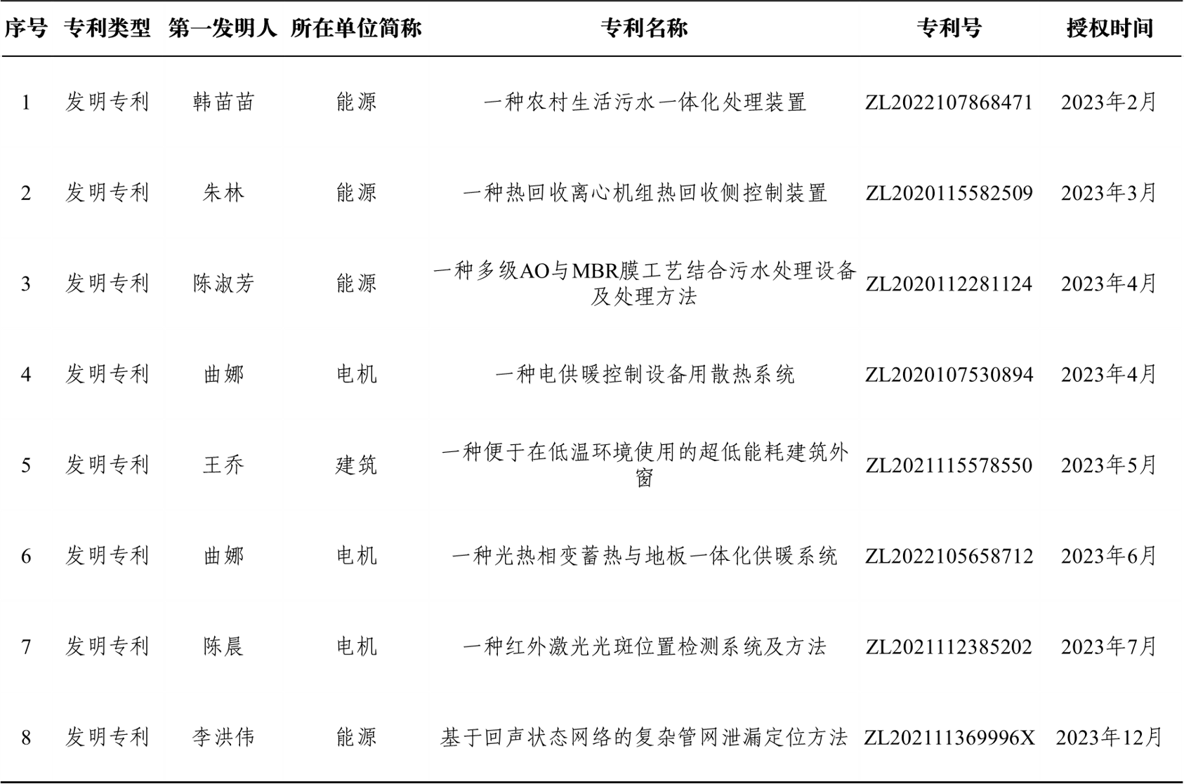 】2023年我校授权发明专利一览表