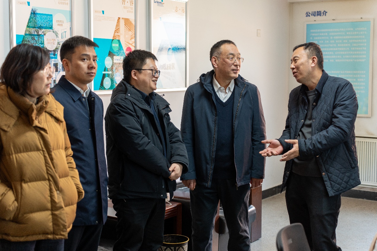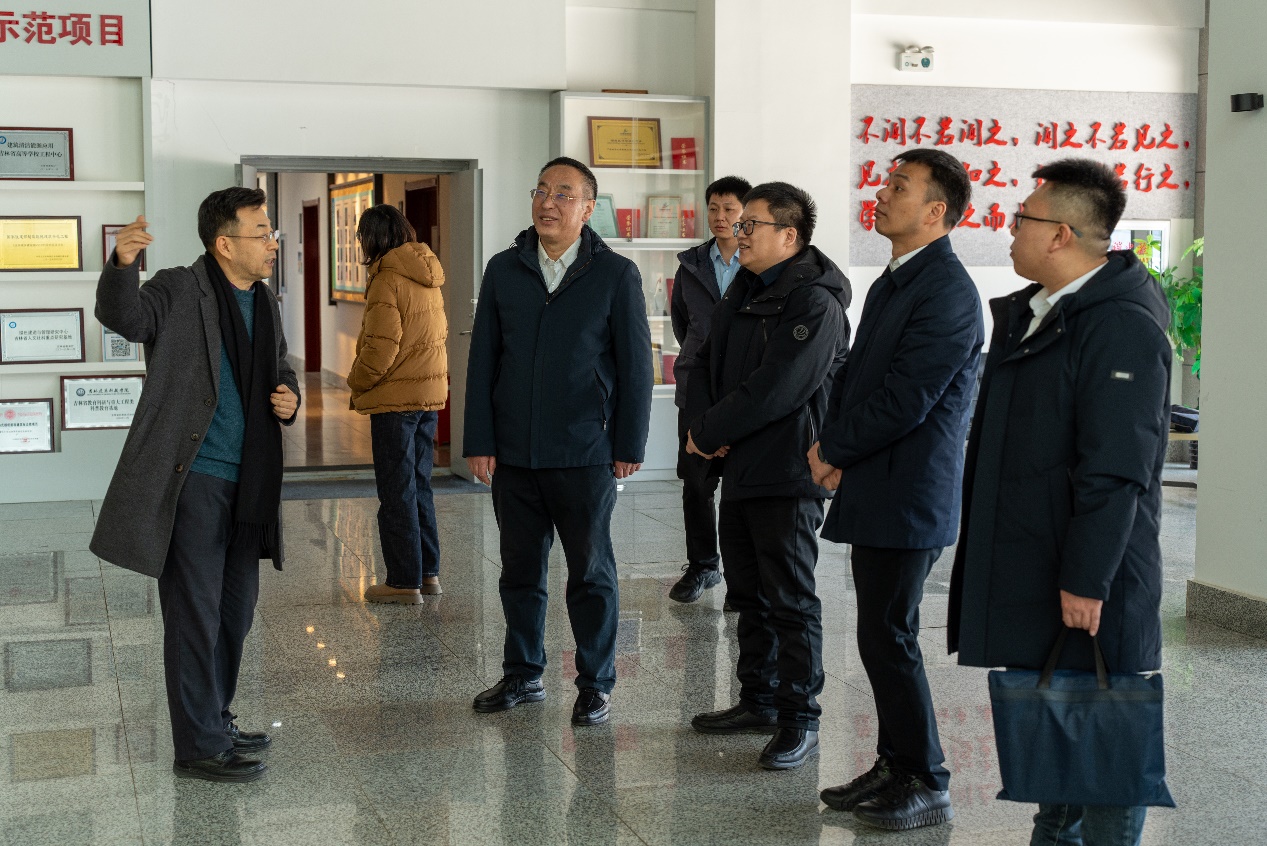 随后,调研组一行考察了我校的近零能耗示范建筑。该建筑结合严寒地区的气候特点和资源优势,成功研发并应用了六大具有自主知识产权的创新技术体系,形成了从“规划设计—核心技术—关键设备—集成应用—系统解决方案”的全体套技术和管理体系。目前,该技术的应用已累计推广至116.5万平方米,带来了超过8000万元的经济效益,并推动了行业产值近4亿元,彰显了我校持续创新的核心竞争力,在行业内乃至全国引起了广泛关注。目前,学校已与格力集团合作,利用示范建筑内的光伏电站和光热集场,试运行了适合严寒地区的光伏直驱供暖技术、蓄热罐+储热井的“双源跨季节储热”技术以及光伏直驱多联空调/冷冻机等创 新技术,为推动可再生能源利用的普及和地方经济社会的高质量发展作出积极贡献,同时助力“双碳”战略目标的实现。