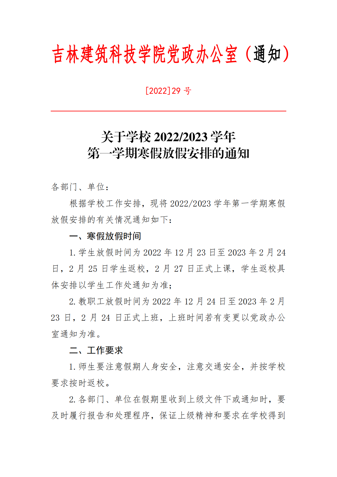 】关于学校2022-2023学年第一学期寒假放假安排的通知