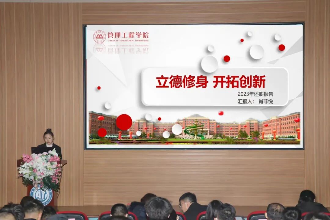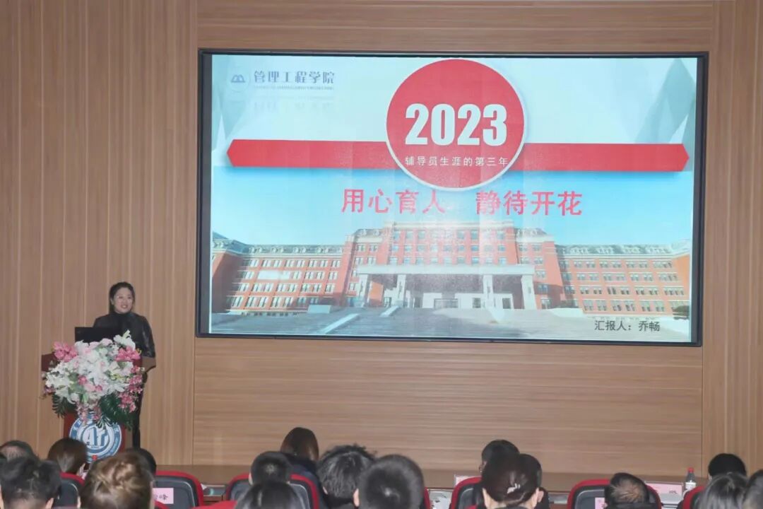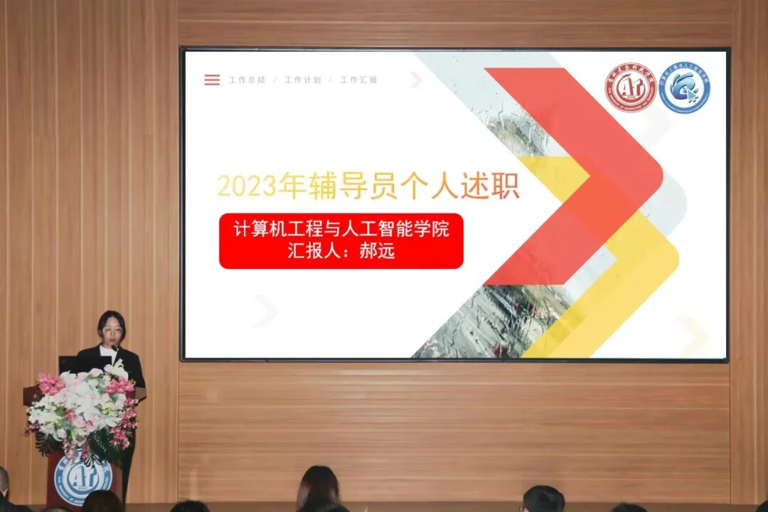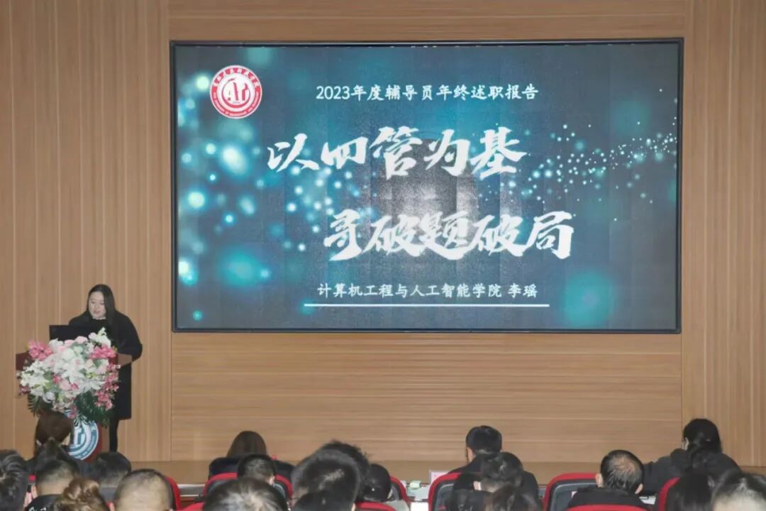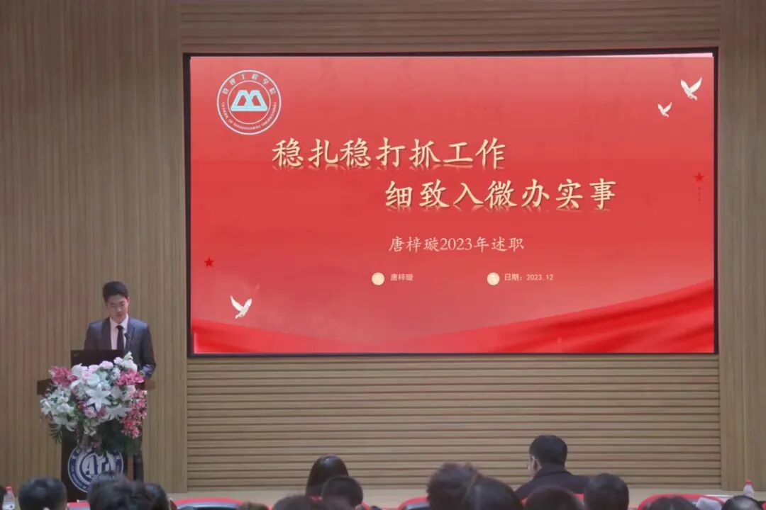 本次辅导员述职主要围绕德、能、勤、绩、廉等五个方面对2023年度工作情况进行个人汇报,通过学生满意度测评,辅导员互评,主管学生工作领导院领导、学工处校团委工作人员、校领导及相关职能部门负责人考评,共六个维度对辅导员工作完成情况进行全方位评价。39名辅导员从工作理念、取得成绩、主要工作完成情况、存在问题和下一步工作目标等方面内容依次上台进行述职。