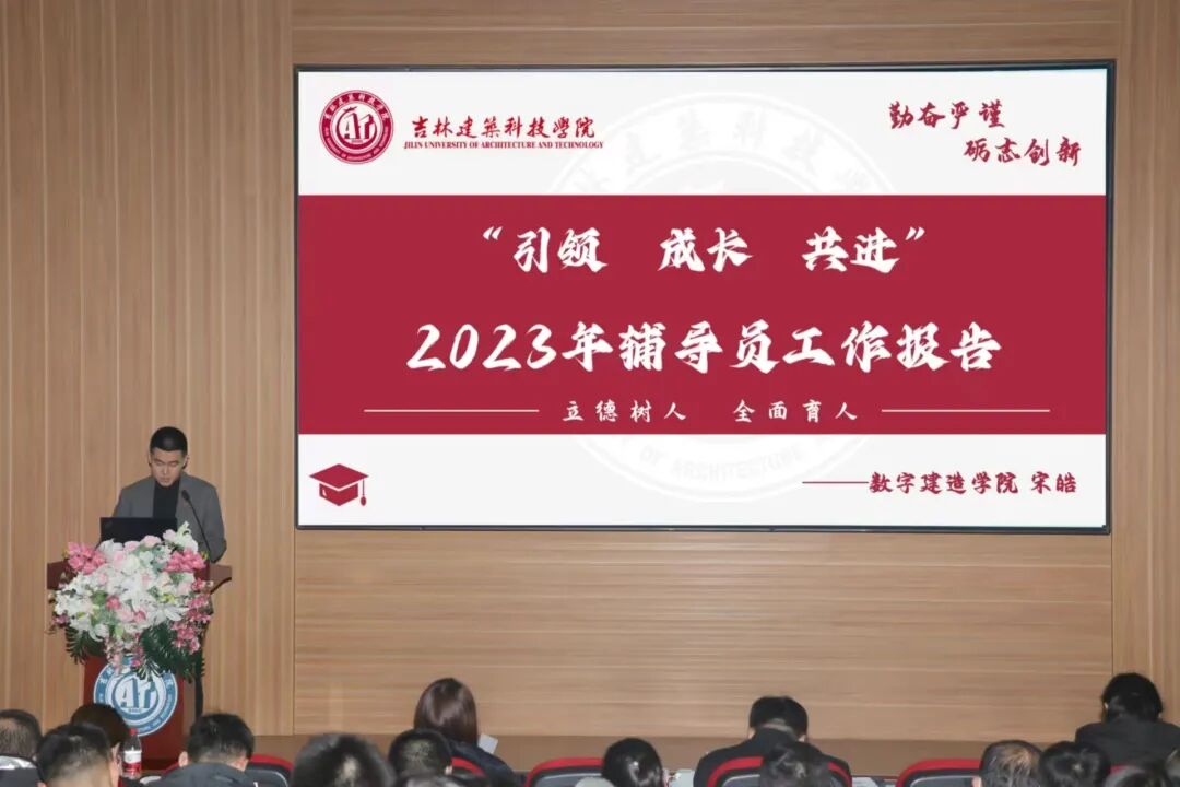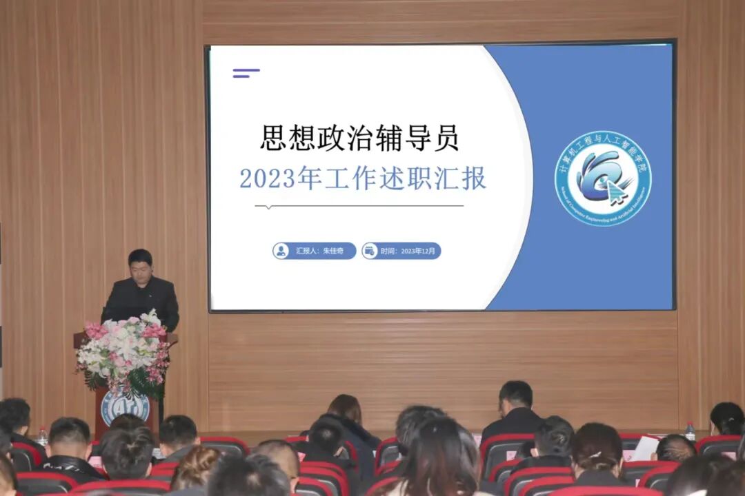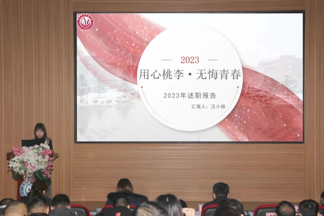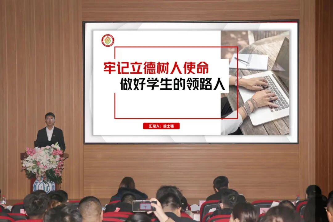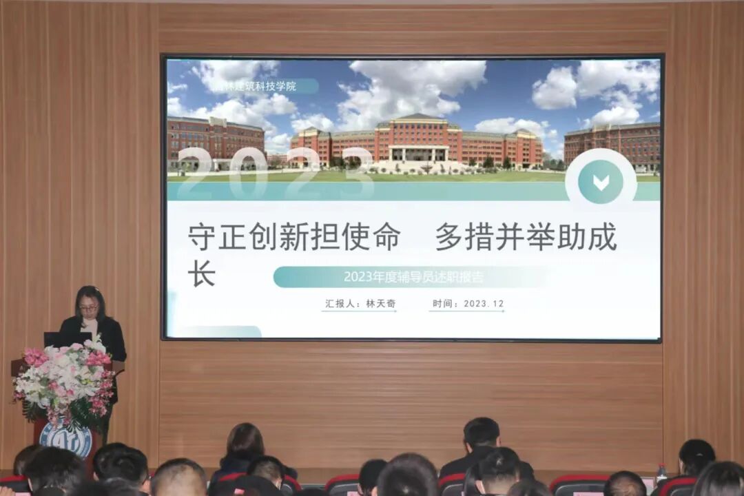 为深入贯彻习近平新时代中国特色社会主义思想和党的二十大精神,切实加强辅导员队伍建设,不断提升辅导员职业化和专业水平,2023年12月6日,学校在建艺馆报告厅召开了2023年辅导员“聚力计划”之辅导员述职大会。学校党委副书记、副校长吕海升,学工处处长李亚东,人事处处长李璐,党委宣传部部长徐晓霞,招生与就业工作处副处长、校友办公室主任姜卓,校团委书记周磊及各学院党总支书记、副书记、全体学团干部参加述职大会。大会由学工处副处长孙永喜主持。