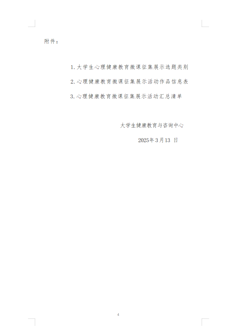 (3)本次作品创作时间需为2024年5月至2025年5月30日,参与过2024年学校首届心理健康教育微课征集展示活动的作品不可重复提交。