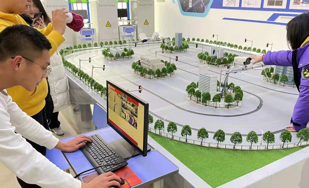 实训现场,指导教师以主流交通监控系统为样本,演示软件操作流程。并指挥学生们分组实操,在模拟交通场景中调试设备角度,通过后台系统分析车流数据,完成违章抓拍模块的联动测试。
