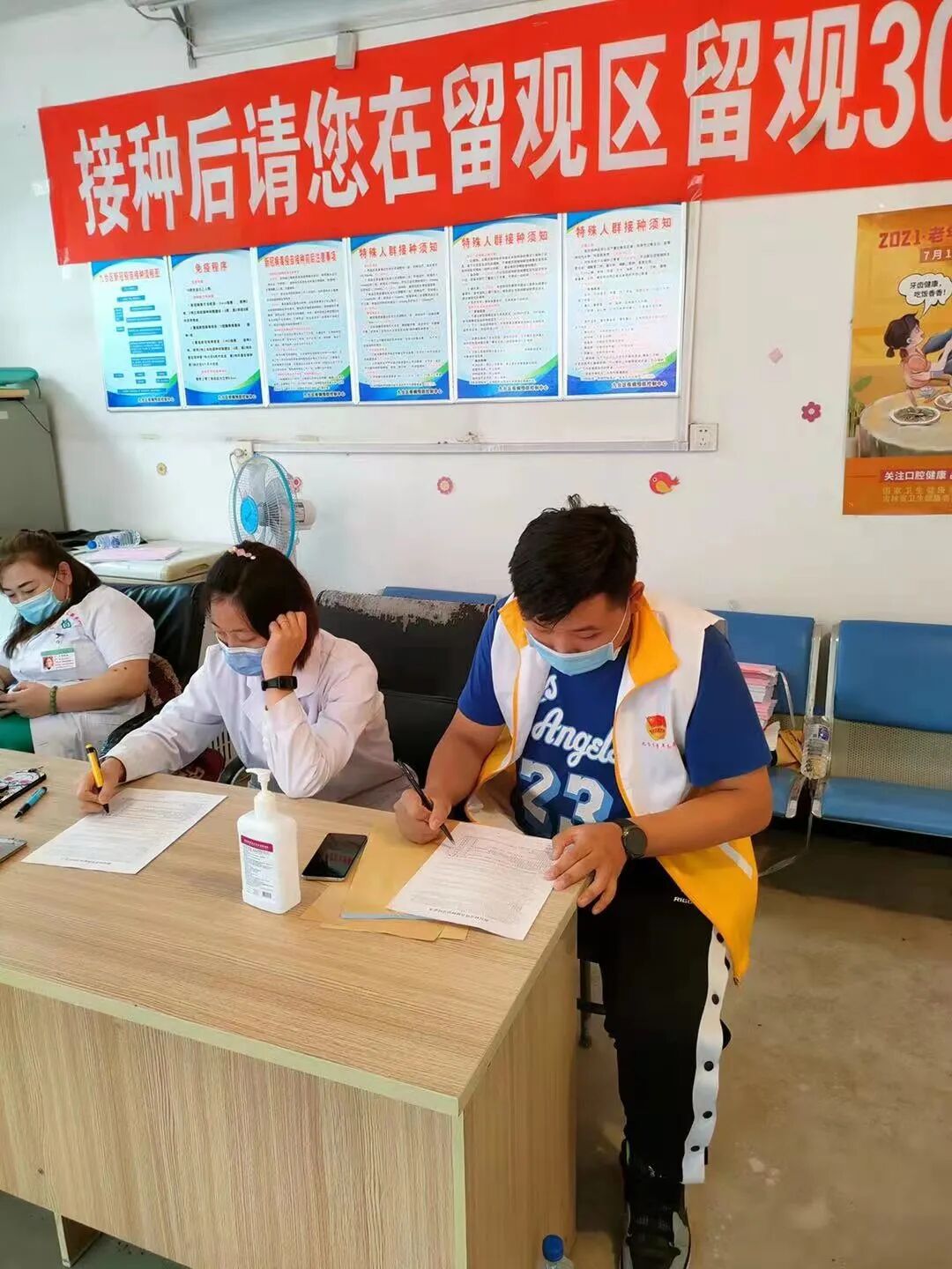 在此疫情来临之际,我作为当代青年大学生加入志愿者队伍,积极投身到家乡的疫情防控工作中。我在社区主要是跟随医护人员进行疫苗的接种工作,在社区卫生服务中心记录疫苗的接种情况,下到农村宣传防疫知识,进行疫苗接种的宣传工作,帮助年龄大的老人进行疫苗接种的登记,为行动不便的老人、残疾人提供服务。