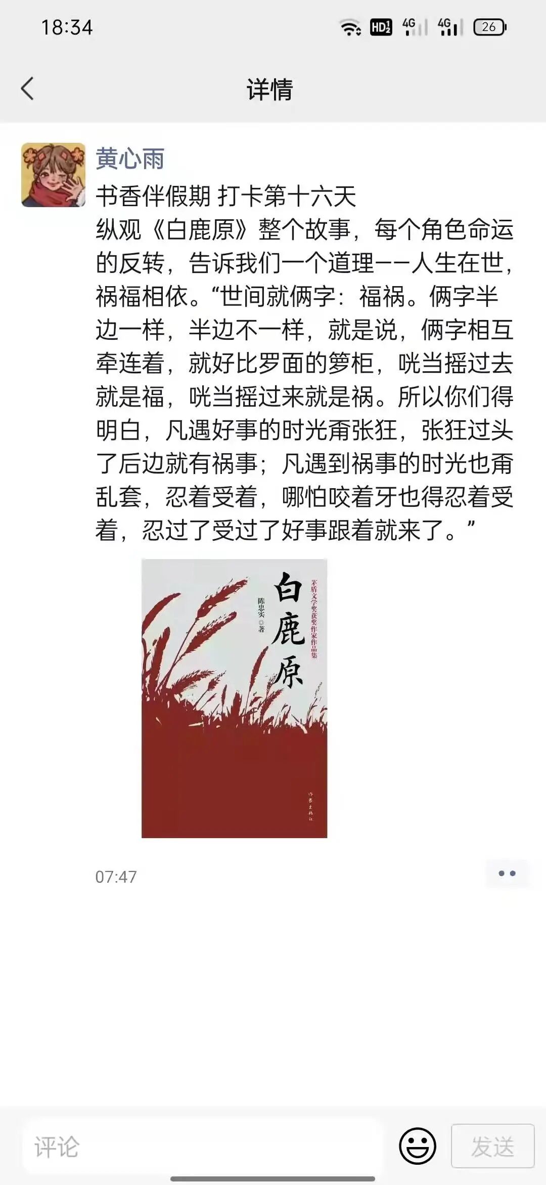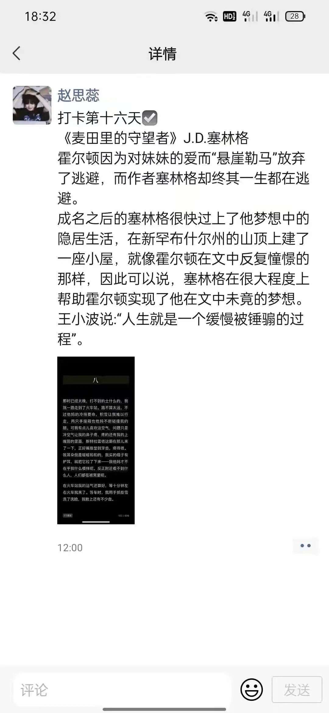 漫卷微折,书香四溢,管理工程学院寒假读书打卡活动在学院老师的帮助下和同学们自发的努力下顺利开展,从生疏到渐入佳境。感受与好书邂逅、与时光相伴的乐趣,在心浮气躁的寒假中品味开卷有益的欣喜。这段时间以来,同学们收获到了很多课本外的知识,以及来自书中的趣事,不知不觉中活动已然过半。