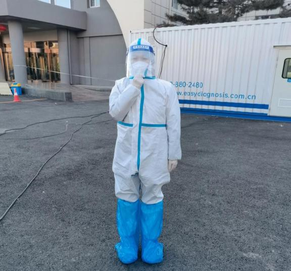 次日,我们便踏上了抗疫之路。我被分配在了个人信息登记的岗位上,而我的下一环节就是医生的采样,所以我深知我岗位的重要,我也深感荣幸能担此大任。人们一个个的上前,我也一个个仔细地为他们登记着信息。一切都那么有条不紊地进行着。诚然,防化服里异常的闷;口渴了甚至无法摘下口罩喝水,但我相信一切的一切都是值得的。当每天数个小时不间断的工作结束时,我才会发现身体的疲惫,但我依然那么的欣慰;当每天末尾的褪去白衣铠甲时,我才会发现耳朵早已被N95口罩勒出的刺痛感,但我依然那么的骄傲。