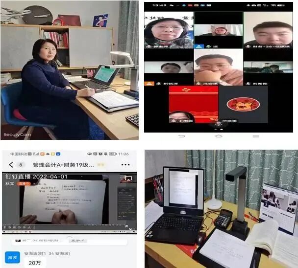 线上教学开展以来,为了规范教学运行,学院实施“1+X”线上教学模式,即1个直播教学平台+多种类教学平台和资源,要求每位授课教师以直播为主,因地制宜,辅助以其他适当的教学平台,以确保线上教学兼具专业性、丰富性。在教学运行中,涌现出许多优秀的典型教学案例。财务管理专业主任郭继秋教授就是其中一例:钉钉课堂远程控制的使用以及高大上的“高拍仪”手写板的完美加持,使郭老师的《管理会计》线上课程如虎添翼,计算例题的手写过程可以实时同步给学生,全方位展现教学活动,解题思路清晰,步骤环环相扣,准确抓住学生的思维,实现线上即时交流。课程结束前在云平台发布课后练习和小组学习任务,锻炼了团队协作能力以及班级凝聚力,形成“讲-练-评-改”的闭合环路。言语间充满了对学生的真诚关爱,充分展现了爱生与乐业的精神,严谨又充满激情的授课,让学生兴趣盎然。严慈相济,刚柔并济的教学风格,让学生甚为崇敬,好评如潮。
