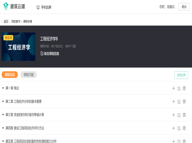 《工程经济学》是工程造价专业的专业核心课,由技术科学、经济学和管理科学相互渗透融合而成的一门综合性课程。成果导向教育 (Outcome Based Education,简称OBE)是一种以学生的学习成果(Learning outcomes)为导向的教育理念,认为教学设计和教学实施的目标是学生通过教育过程最后所取得的学习成果。本学期,该课程以OBE理念为导向并融入课程思政进行在线教学。为减少学生频繁更换教学平台,课程所有任务均发布在建筑云课平台中,如图1、图2。