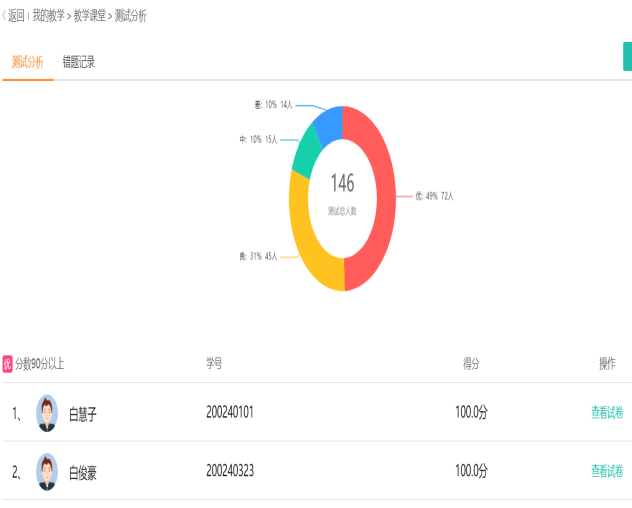通过线上课程的问卷、节次测试、章节测试、综合练习等环节,及时整理数据、分析学生学习效果,尤其是对某一知识点的掌握情况,如图9、图10。