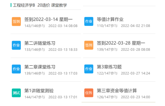 当然,在《工程经济学》课程线上教学实践中也出现了一些问题和不足: