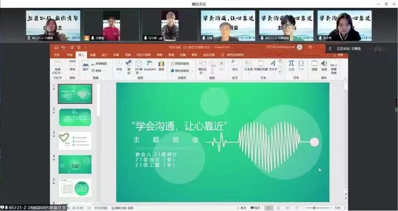 生活因愉快的心情而美丽,生命因健康的心理而绚烂,如今快节奏的生活让很多人逐渐陷入到压力的循环中,为引导大学生适应大学环境、学会自己我调节、与人沟通,管理工程学院开展了“学会沟通,让心靠近”主题班会,本次线上会议由辅导员汪小杨老师主持,审计专业、工程造价专科、工程管理专科全体同学参加。