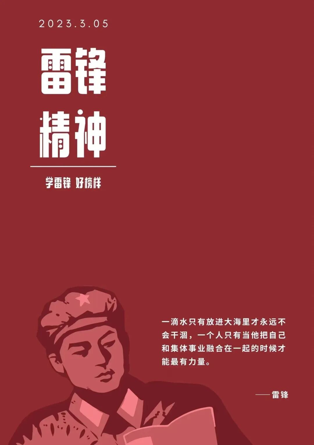 弘扬雷锋精神,就是要淬炼责任与担当。身体力行以“为人民服务”做核心的雷锋精神,让学雷锋活动融入日常,化作经常,“做一颗永不生锈的螺丝钉”。恰逢少年与其按照参考做题,等待被赋予价值,不如去寻求新的思路,发现和创造价值。以满腔热血,回报社会,更好地构建中国精神、中国价值、中国力量,让雷锋精神在新时代熠熠生辉!