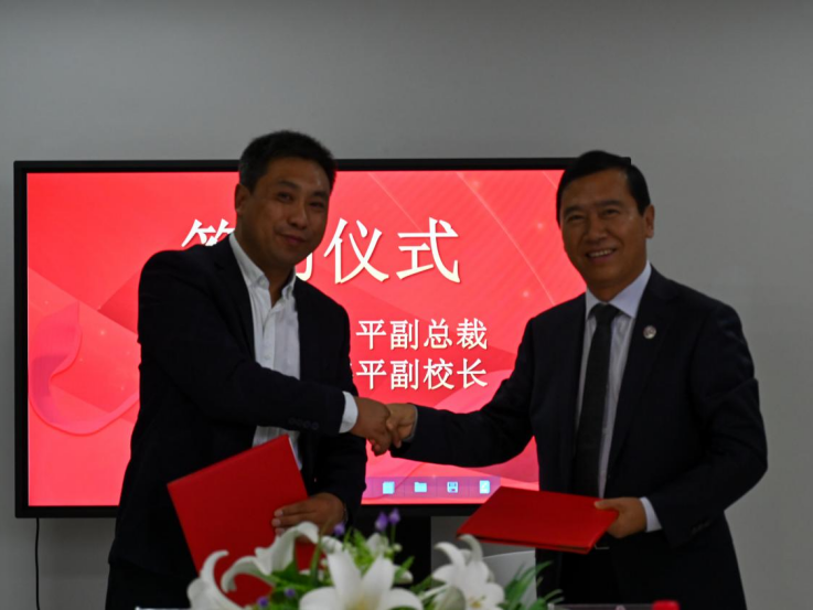 赵海平副校长与艾平副总裁签署校企合作协议书。