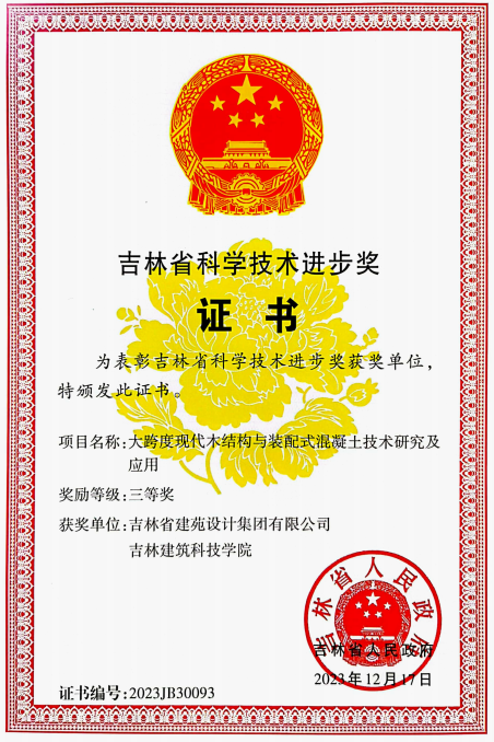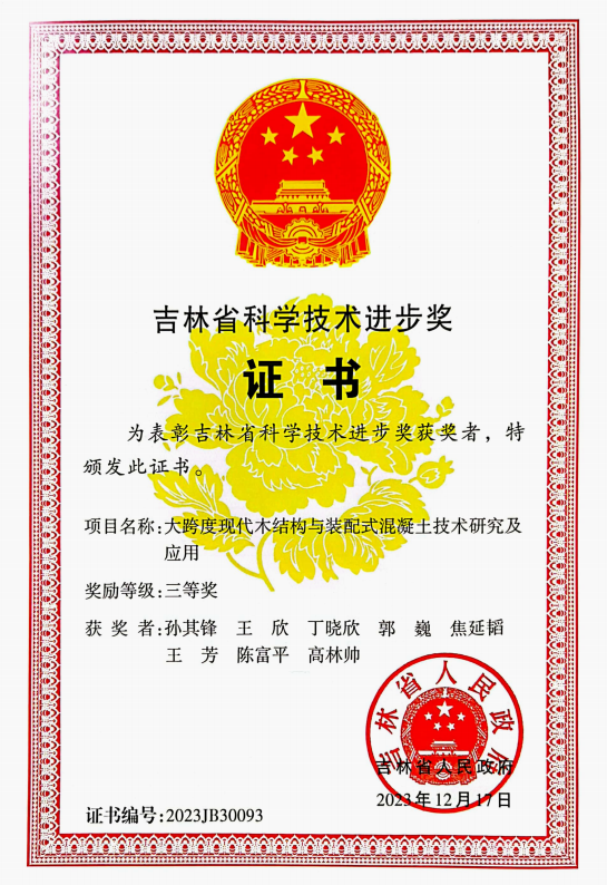 近日,吉林省人民政府公布了《关于2023年度吉林省科学技术奖励的决定》(吉政函〔2023〕80号),我校管理工程学院与吉林省建苑设计集团有限公司联合申报的“大跨度现代木结构与装配式混凝土技术研究及应用”项目获得吉林省科学技术进步奖三等奖,我校获奖人:王芳、陈富平、高林帅。
