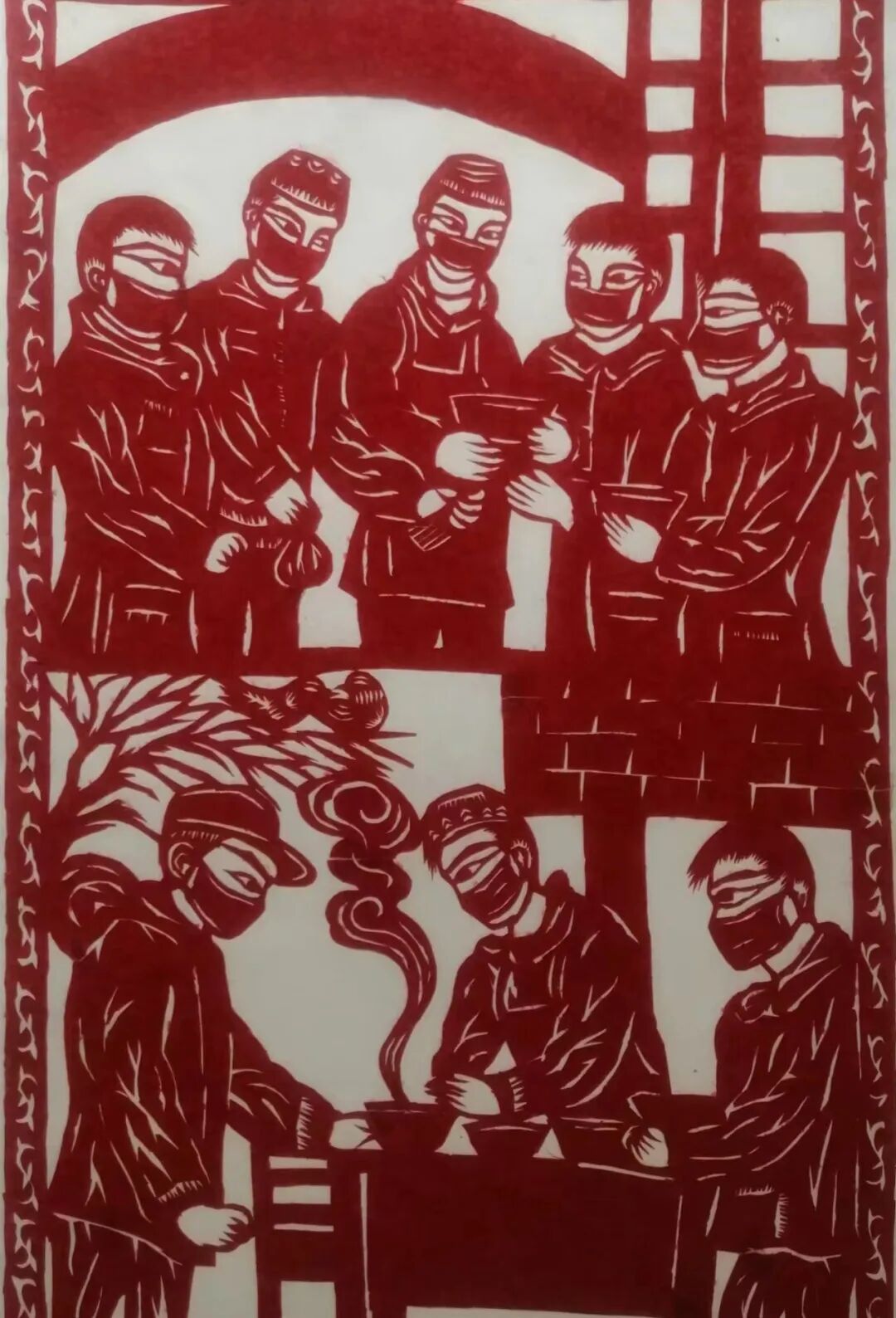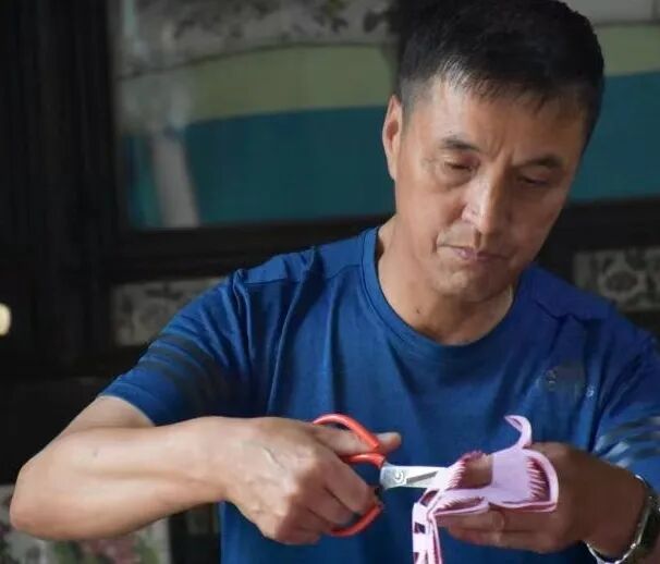 在实践队员们好奇的追问中,黑久利老师缓缓讲述了他同回族剪纸这项非遗技艺的渊源,幼时的黑久利老师就对剪纸展现出浓厚的兴趣,开始只是和家中的老人学习剪纸,技艺日渐精进后却迫于生活压力短暂放弃剪纸。但对于承载着民族美好祝愿的剪纸黑久利老师从来没有遗忘,逐渐他发现这一项传统民俗活动,不仅只有寄托美好祝愿的寓意,跳脱出传统剪纸的花鸟鱼虫框架,他有意寻找更多文化载体,产生了改革开放系列、戏曲文化系列等让回族剪纸从最初避灾祈福的仪式用具,到如今民俗艺术的瑰宝,逐步成为带动当地经济发展的特色产业。当历史的光照进当下,回族剪纸不仅见证了无数像黑久利老师一样的非遗传承人为之奋斗的人生足迹,也见证了梅河口市的历史变迁,一张纸,一把剪,一双手的绘就,已然在一帧帧的历史画卷中记载着剪纸与山城的前世今生。