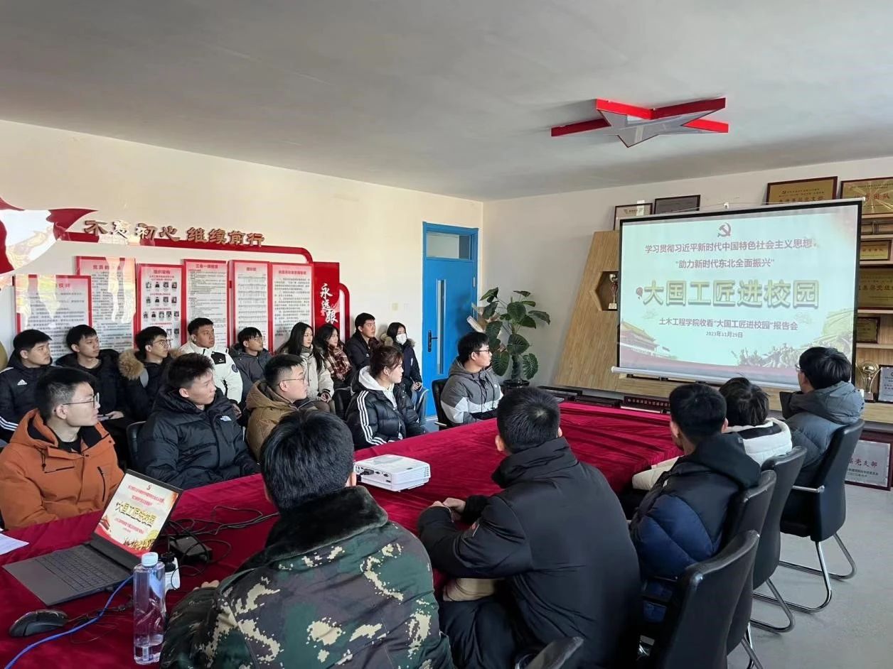为学习贯彻党的二十大精神,大力弘扬劳模精神、劳动精神、工匠精神,引导全体党员以大国工匠为榜样,土木工程学院于11月29日,组织全体教师党员及学生党员于党团活动室收看“大国工匠进校园”报告会。