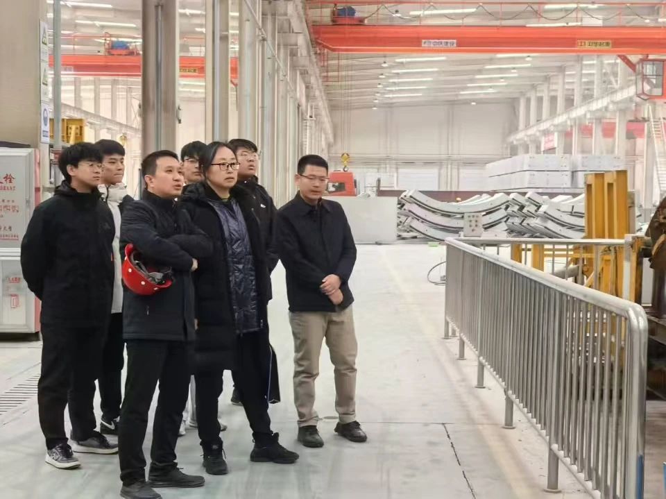 为了更好地提升应用型人才的行业认知,教师和学生对建筑产业的发展方向积极探索,2024年11月6日,我校绿色装配式建筑产业学院院长赵莹教授带领土木工程专业部分师生前往中庆建设有限责任公司预制构件工厂参观学习。
