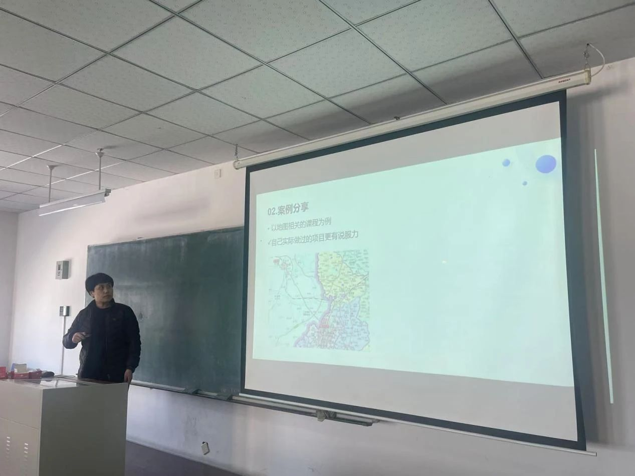 本次沙龙活动中,牟秋蔷老师以地图相关课程为例,从课程思政与实践应用的结合、理论知识点在工作实践中的应用、教学活动设计中理论与实践结合方法、学生们感兴趣的实践形式等方面进行阐述,并以自己之前负责的工程项目为例,结合教学活动中学生的反馈,给各位老师进行了分享,并对无实践经验的青年教师使用理论与实践结合授课给出了建议。