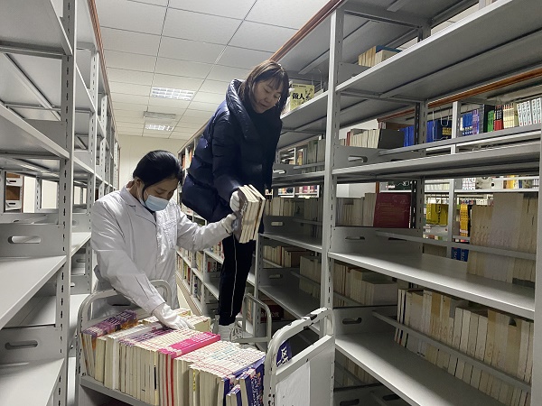 2021年,是国家、也是我校实施“十四五”规划的开局之年。在我国疫情防控取得明显效果、国民经济保持良好发展态势的大背景下,同时受到我校繁荣发展大势的鼓舞,本学期开学伊始,图书馆全体员工就投入了紧张有序的工作之中。图书馆藏书区图书架位的调整,是图书馆业务工作的常态。随着各类图书的不间断上架,日积月累,总会出现藏书架位的多少与下一步图书上架的矛盾问题。我校新校区图书馆已经使用五年,2019和2020两个年度,在正常开馆的情况下,已经对出现的数量不大的架位问题进行了调整,总数已达20多万册图书。但对于需要跨藏书区、跨楼层调整,且涉及几个图书类目数量又较大的架位调整,在正常开馆的情况下就无力实施了。为了稳妥落实学校关于准备迎接国家教育部合格评估的工作部署,给未来几年大量入馆的新书腾出架位,新学期的第一天上午,按照馆长的部署,流通部的负责同志经过实地踏查和测算,就提出了具体的调整方案,下午馆长即组织中层干部碰头会论证通过。第二天上午,在积极组织调进8.2万册本学期教材的同时,繁重的藏书架位调整工作就紧张而有序地开始了。本次调整涉及三个楼层、三个大类图书,全部工作任务总数要搬动图书17万多册。图书馆全体员工以昂扬的精神风貌,全员参加,大家决心抓住学生返校之前的有力时机,尽可能快地推进工作进程,为下一步的国家合格评估,为学校的新发展阶段做出更大的贡献。