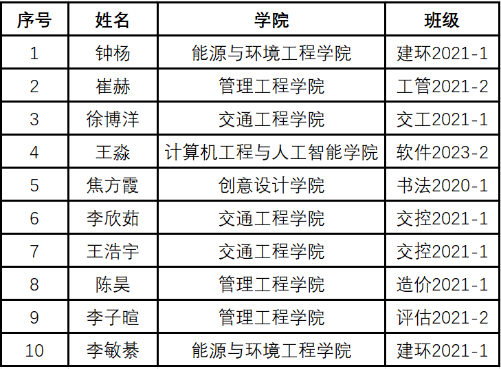 为深入学习宣传贯彻党的二十大精神、教育部等八部门联合下发的《全国青少年学生读书行动实施方案》通知精神和学校“大学生读书”活动安排,进一步营造爱读书、读好书、善读书的良好校园文化氛围,激发大学生立志为中华民族伟大复兴而读书的责任感、使命感,进一步推动学校书香校园建设。我校图书馆、团委、学工处开展9月大学生“阅读之星”评选活动,以此深入推动大学生读书行动,现将2023年9月“阅读之星”评选名单公布如下: