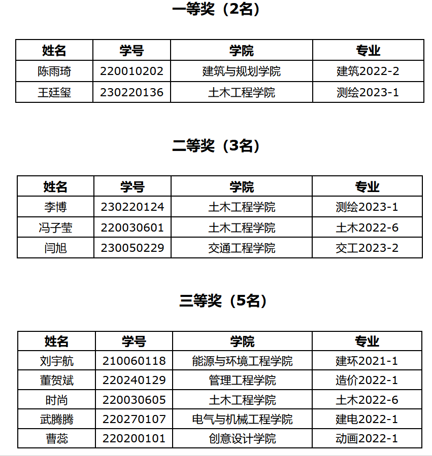 根据参赛选手的比赛成绩,评出一等奖2名、二等奖3名、三等奖5名。