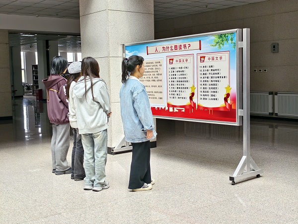 点燃读书激情,共建书香校园。在2024年4月23日第29个“世界读书日”到来之际,学校图书馆举办了以“宣传展板、宣传条幅”为主要内容的“世界读书日”宣传活动。深入学习领会习近平总书记关于读书的重要论述,真正把读书当成一种生活态度、一种工作责任、一种精神追求、一种境界要求,努力做到学以益智、学以励志、学以立德、学以修身,通过阅读培养道德,使阅读成为修身正己的强大动力。以此宣传活动为标志,拉开了读书阅读推广“书香校园”系列活动的序幕,活动从4月开始将持续至11月,分线下、线上两种方式,通过阅读推广系列活动,皆在倡导广大读者“爱读书、读好书、善读书”,营造浓厚的校园文化氛围,让书香飘满建科校园。