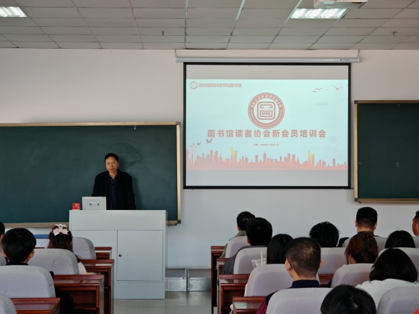 为进一步加强读者协会学生干部队伍建设,不断提高读者协会服务读者的能力和水平,更好地为读者提供服务,图书馆读者协会于2024年10月11日在公共楼205教室举办了2024届新会员培训会。图书馆馆长董荣做了培训教育,图书馆读者协会指导教师吴博、读者协会会长施翔远、各部门负责人及2024级全体新会员参加了会议。