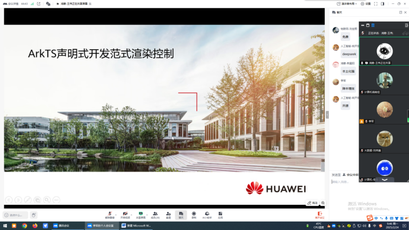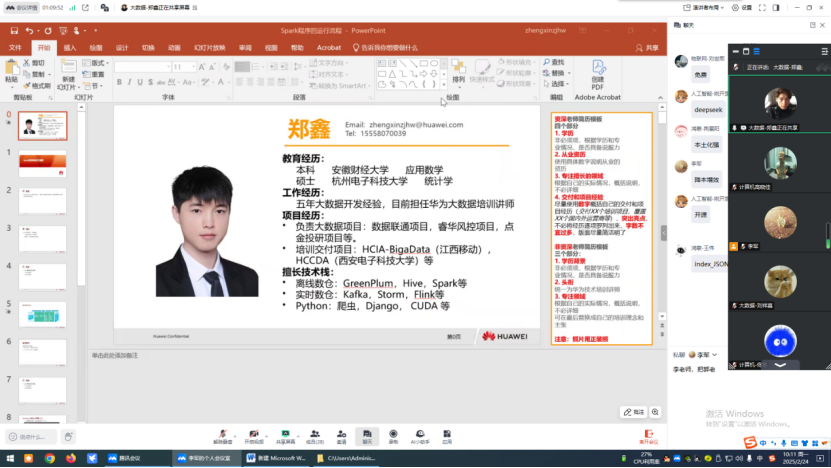 为了更好的推动华为产业学院教学高质量发展,推动人才联合培养,共同打造中国特色高水平应用型民办大学和具有国际竞争力的世界一流企业的校企协作基地,我学院于2025年2月24日通过腾讯会议对华为的本学期七名驻校讲师进行了试讲工作。参加试讲工作的主要领导老师有计算机学院院长张素莉、现代产业学院院长王新民、教务处副处长白亮、督导组督导郭秀娟、计算机学院副院长高晓佳、及相关专业教研室主任和所有担任下学期助课任务的教师。