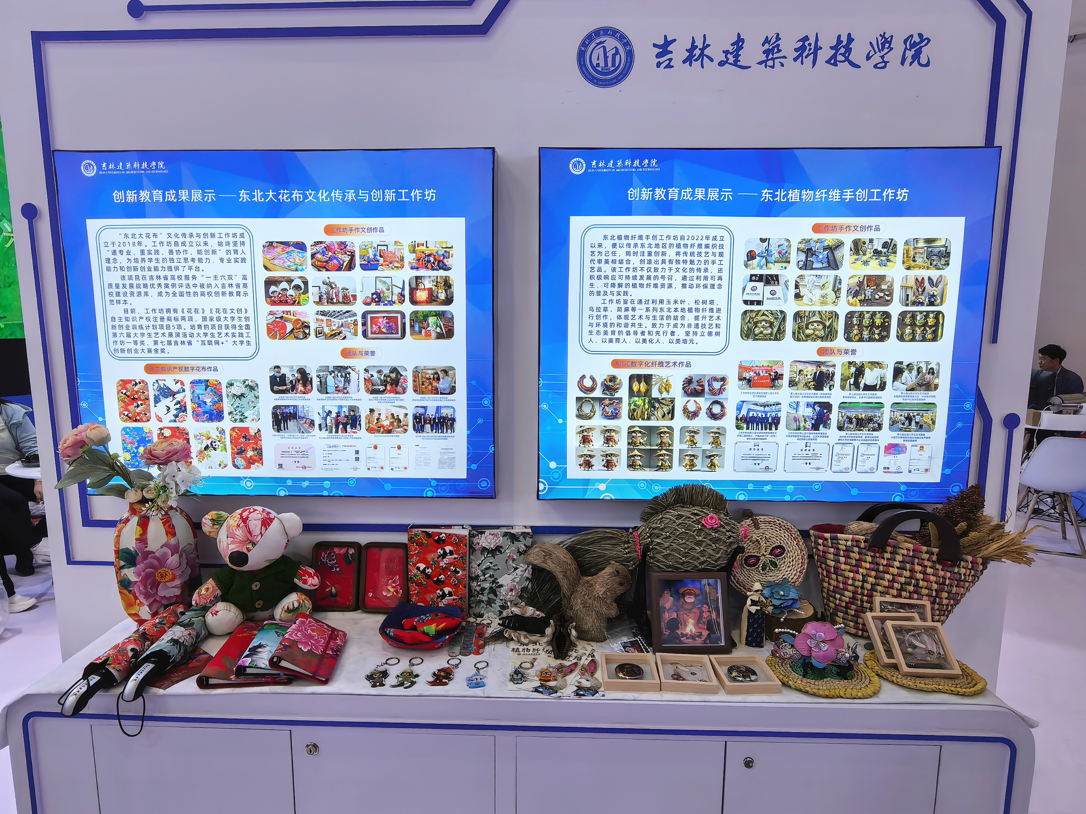 2025年5月23日至25日,第 63 届中国高等教育博览会在长春东北亚国际博览中心盛大举行。吉林建筑科技学院创意设计学院公共艺术专业的两个艺术实践工作坊 “东北大花布文化传承与创新工作坊” 和 “东北植物纤维手创工作坊” 精彩亮相,吸引了众多参观者的目光,成为展会中的一大亮点。