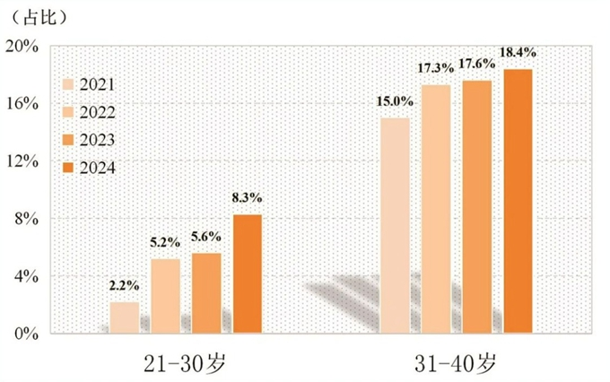 以58到家为例,平台入驻劳动者超200万人。2021年至2024年上半年,大专及以上学历劳动者的比例同比提升约23%。从年龄分布上看,2024年上半年,40岁以下从业者的占比较2021年提升了12%。