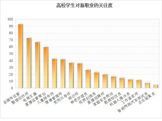 一项联合多所高校的随机调查显示,近20%的大学生毕业后倾向选择灵活就业形式,高校学生愿意从事的新职业中数字经济类职业占比最高,达到37.4%,其次是生活服务类职业,占比29%。最受高校生关注的十大新职业中,有一半以上支持灵活就业,分别为:自媒体运营、整理收纳师、电商主播、直播运营策划、儿童陪伴师、健康管理师、宠物训导师、陪诊师、养老护理员及视频创推员。