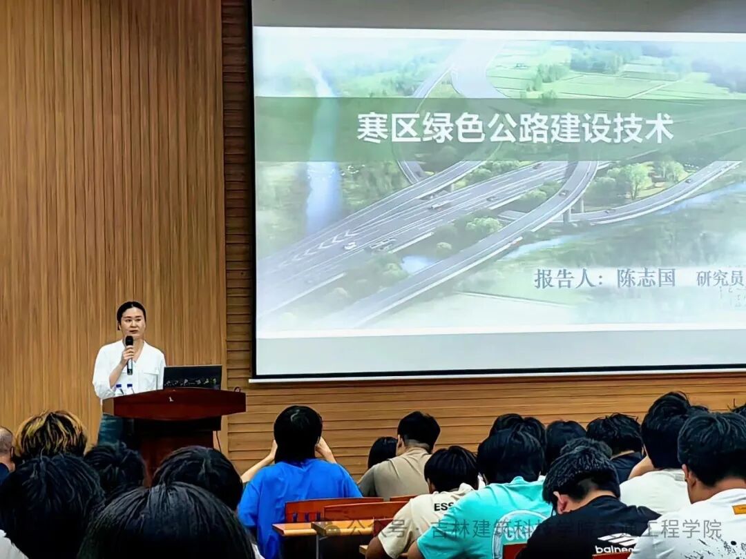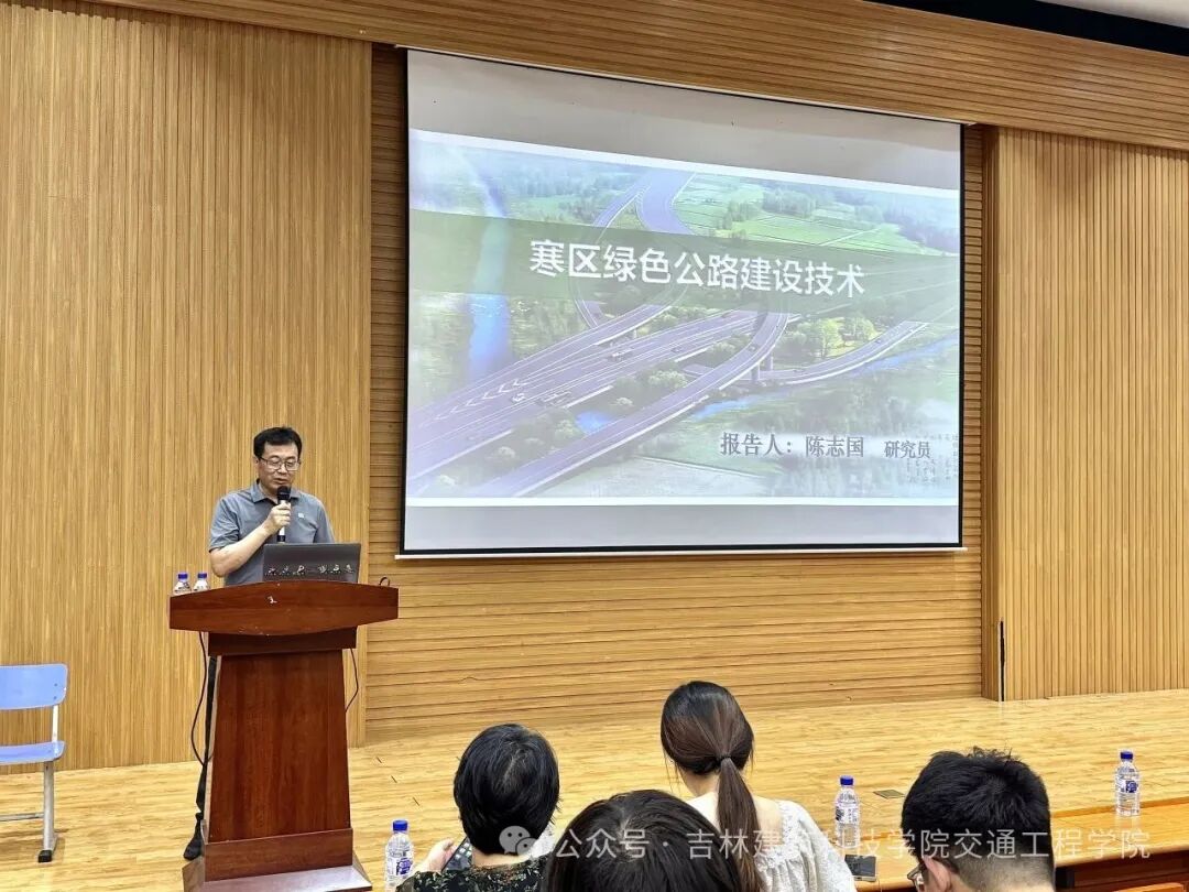 2025年6月24日,交通工程学院“寒区绿色公路建设技术”学术报告会在土木报告厅隆重举行。本次报告由吉林省交通科学研究所副所长、交通运输部“季节性冻土区公路建设与养护技术”重点实验室主任陈志国研究员主讲,交通工程学院副院长魏丹院长主持,交通工程学院全体师生参会。报告围绕寒区公路建设中的资源环境挑战、绿色公路技术体系及典型工程实践展开。