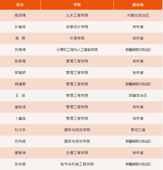 此次获评的14名同学分别为杨添琦、狄美佟、高爽、郎美娇、陈家园、刘锦涛、杨婧君、杜文宇、崔桂佳、卜鑫垚、王淼、刘帅超、姜智迪、张宇昴。他们在西部计划志愿服务期间,以实际行动践行志愿精神,在各自岗位上发光发热,展现出了建科学子的良好风貌。