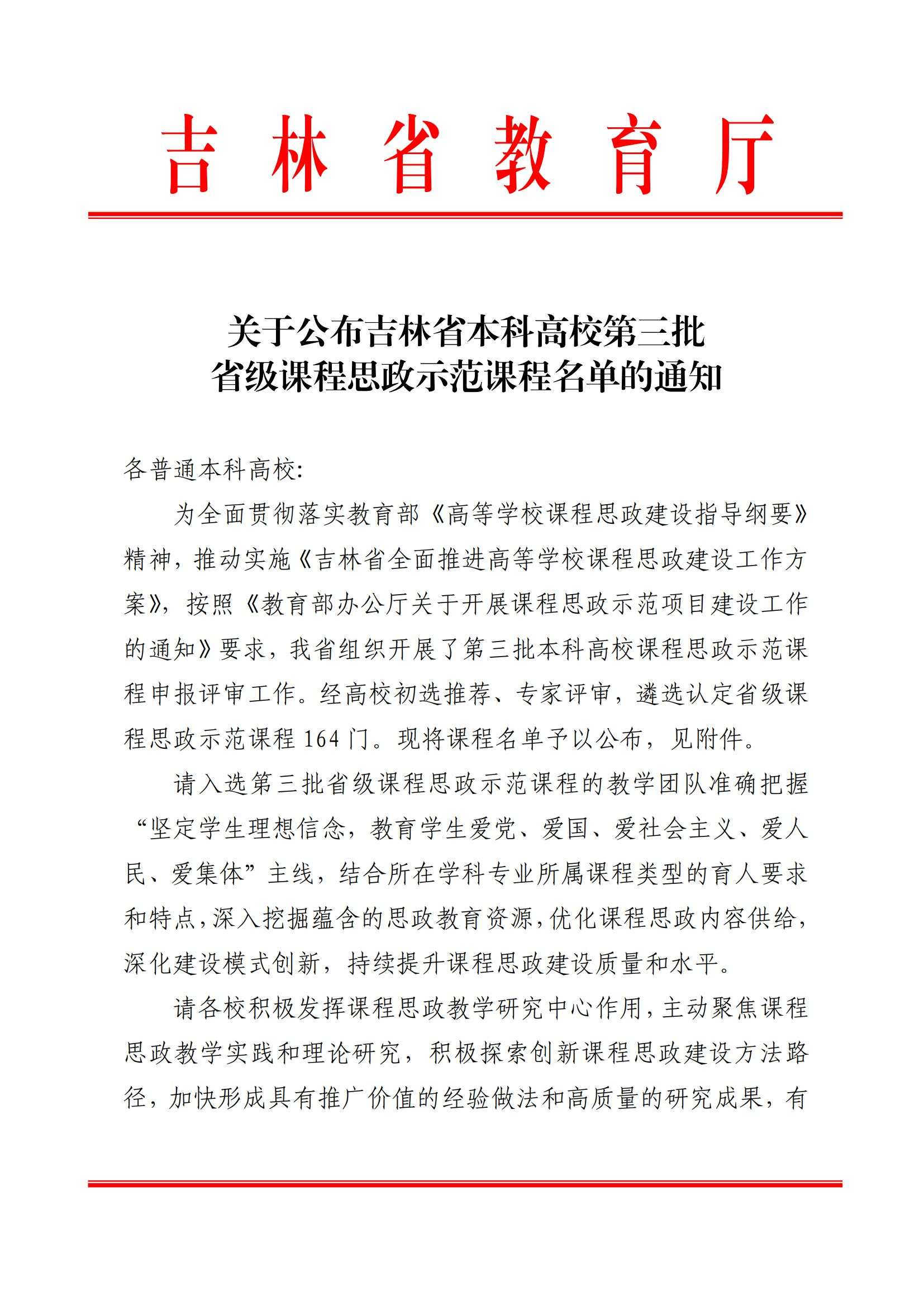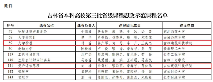 近日,吉林省教育厅发布了《关于公布吉林省本科高校第三批省级课程思政示范课程名单的通知》,我校《大学物理》《资产评估原理》2门课程获批为省级课程思政示范课程。
