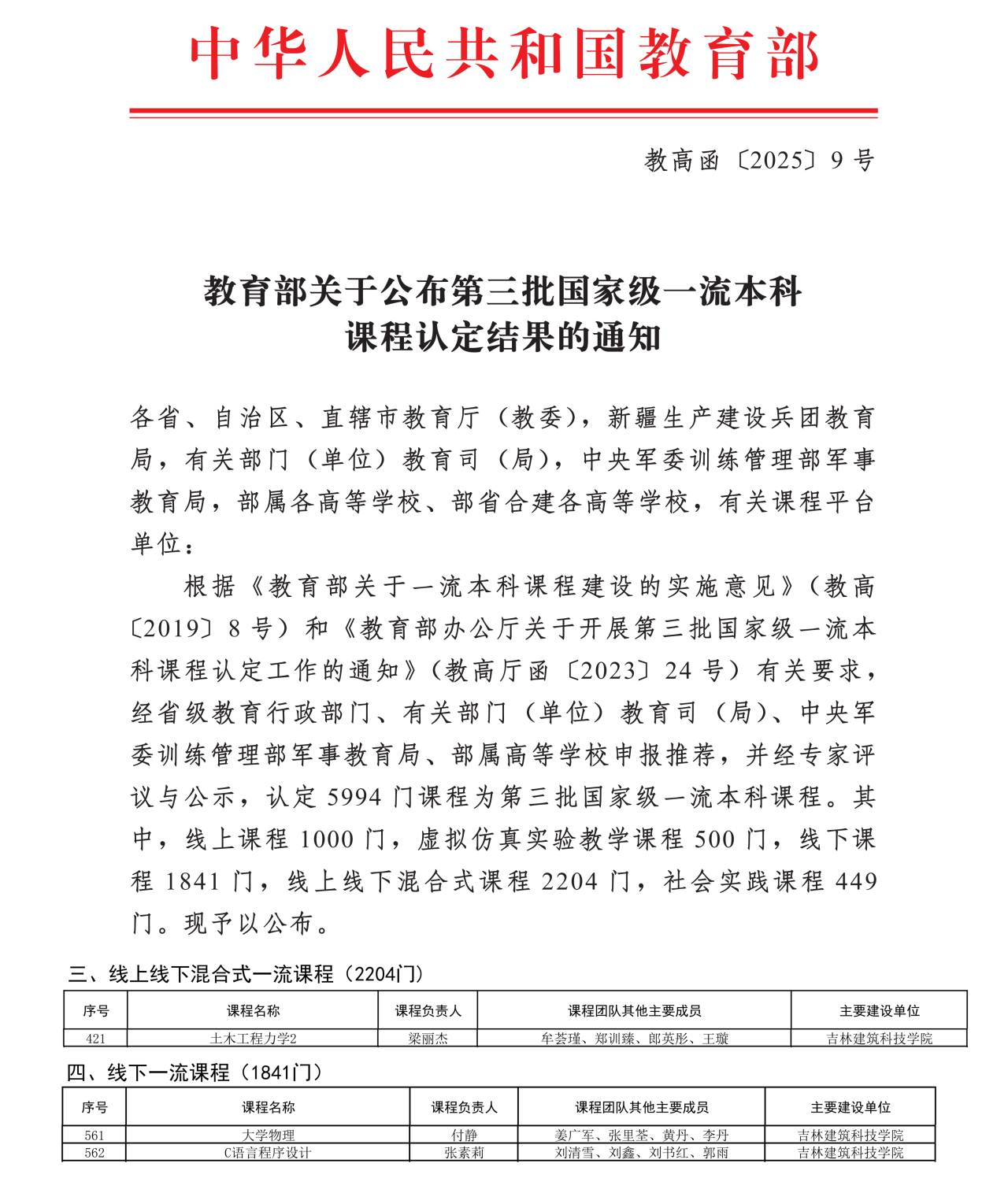 ▲3门课程获批国家级一流本科课程