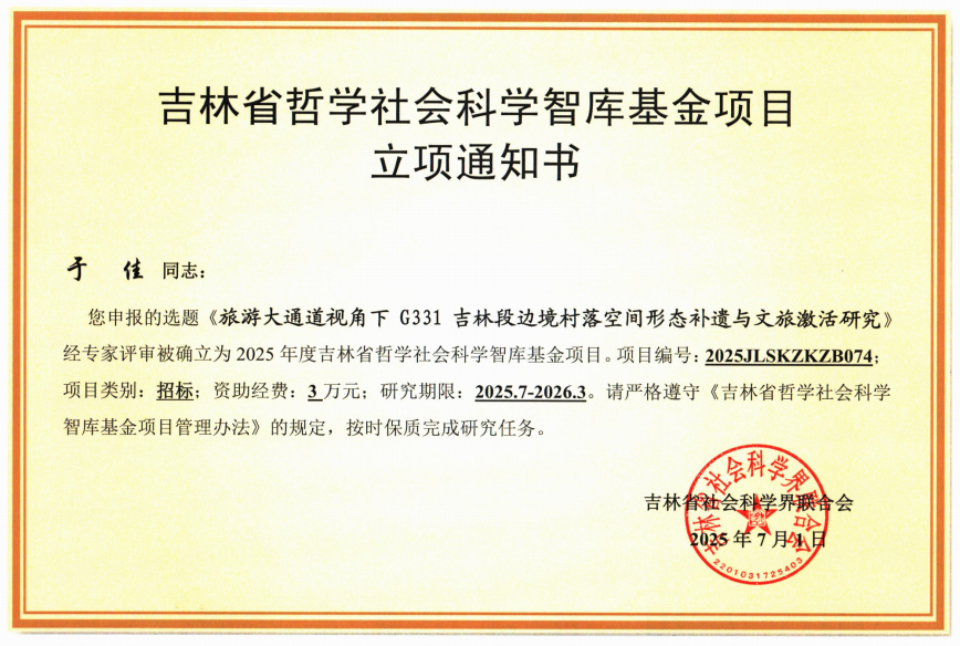 六、研以致用,智援边境——于佳老师获省智库基金立项,服务边境文旅发展