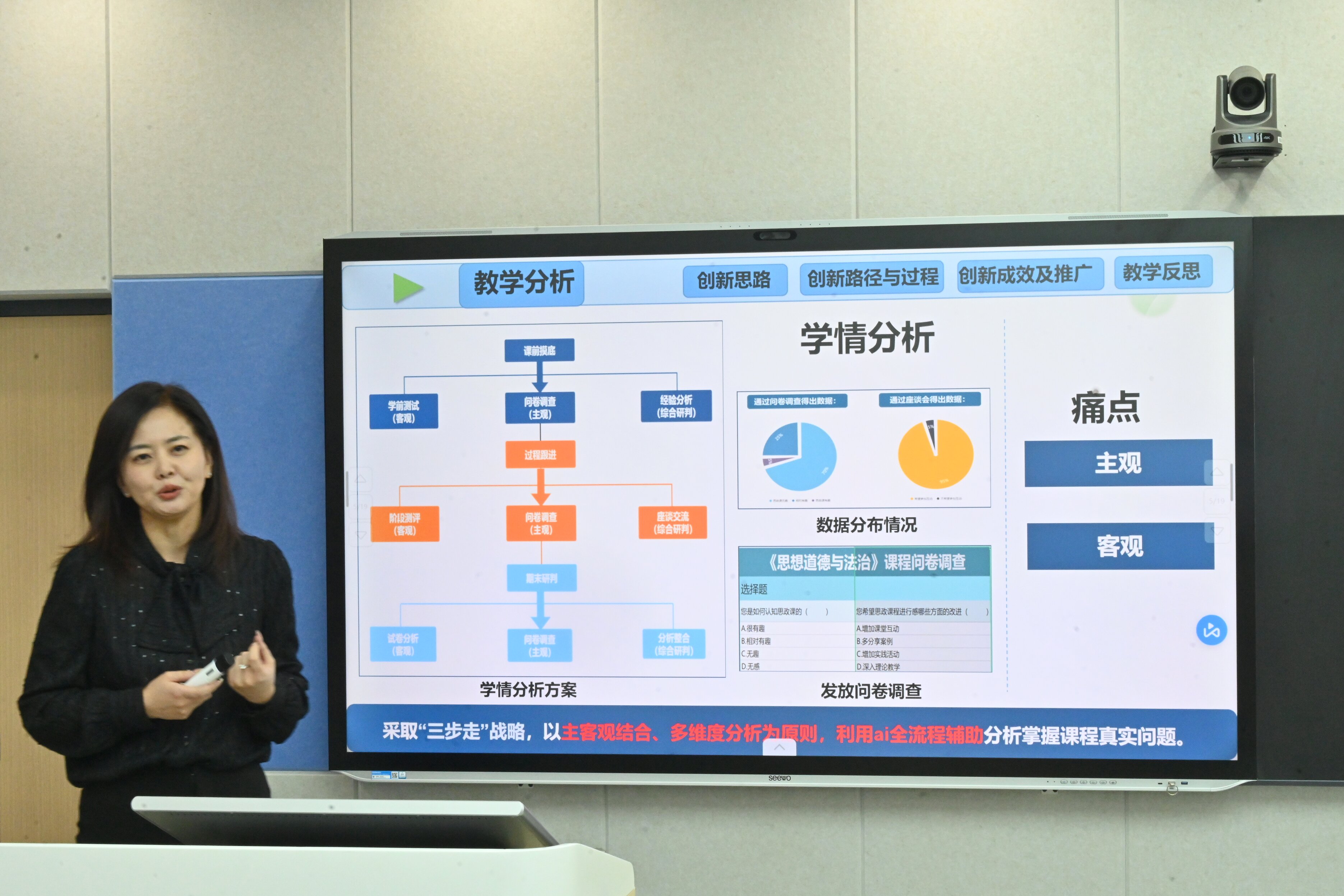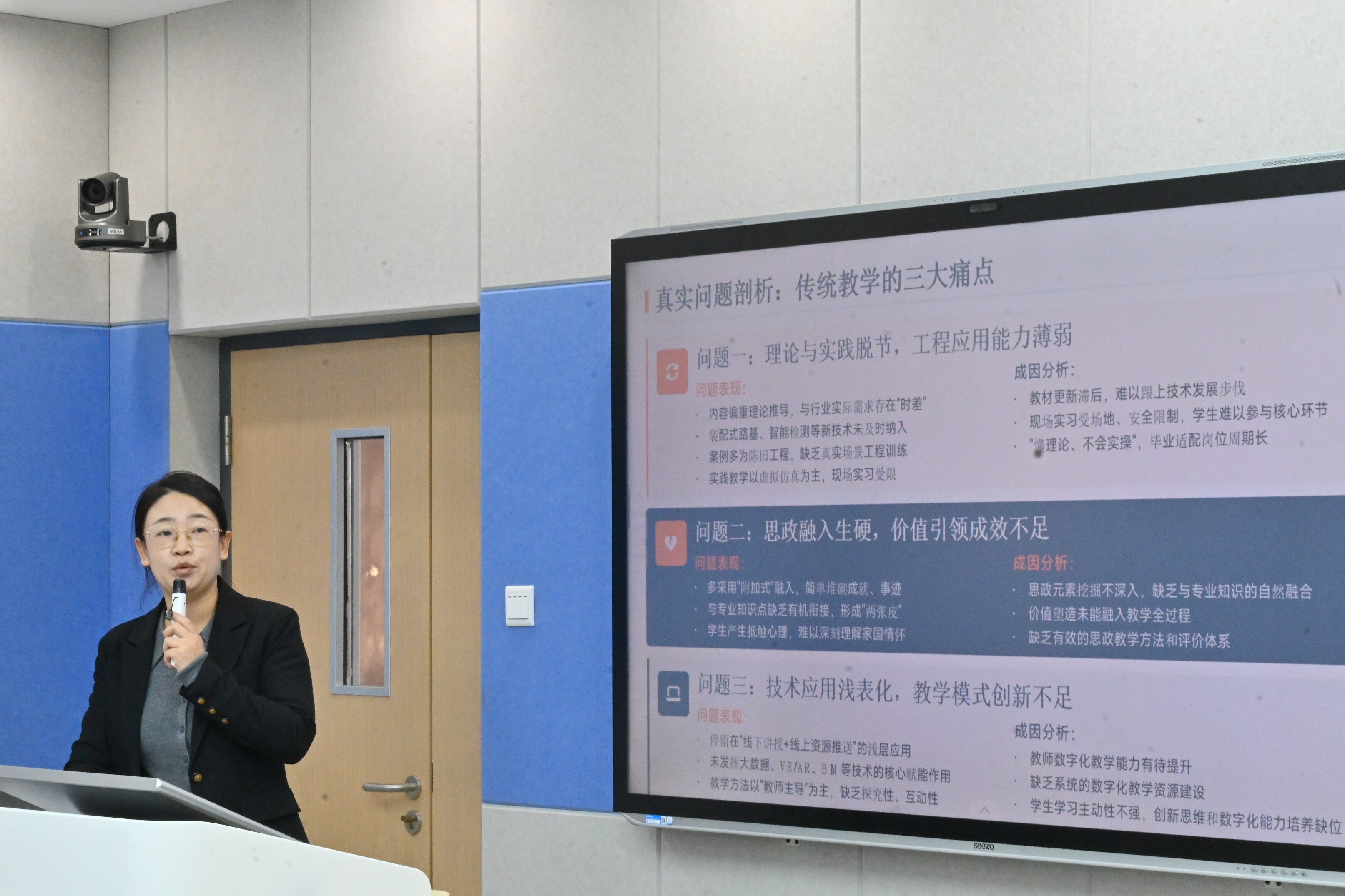 决赛现场,参赛教师紧扣“推动教学创新 培养一流人才”的大赛主题,围绕各自学科特点,深入挖掘教学内容,真切提炼教学痛点,并通过教学方法创新、信息技术应用、思政元素浸润路径等多方面,将学科前沿与课程教学融合,打造互动性强的课堂场景,展示了我校教师教学创新水平。评委专家对参赛教师的表现进行了细致评审与打分,高度赞扬了参赛教师整体教学水平,并围绕教学内容、教学目标、教学过程等方面提出建设性意见。