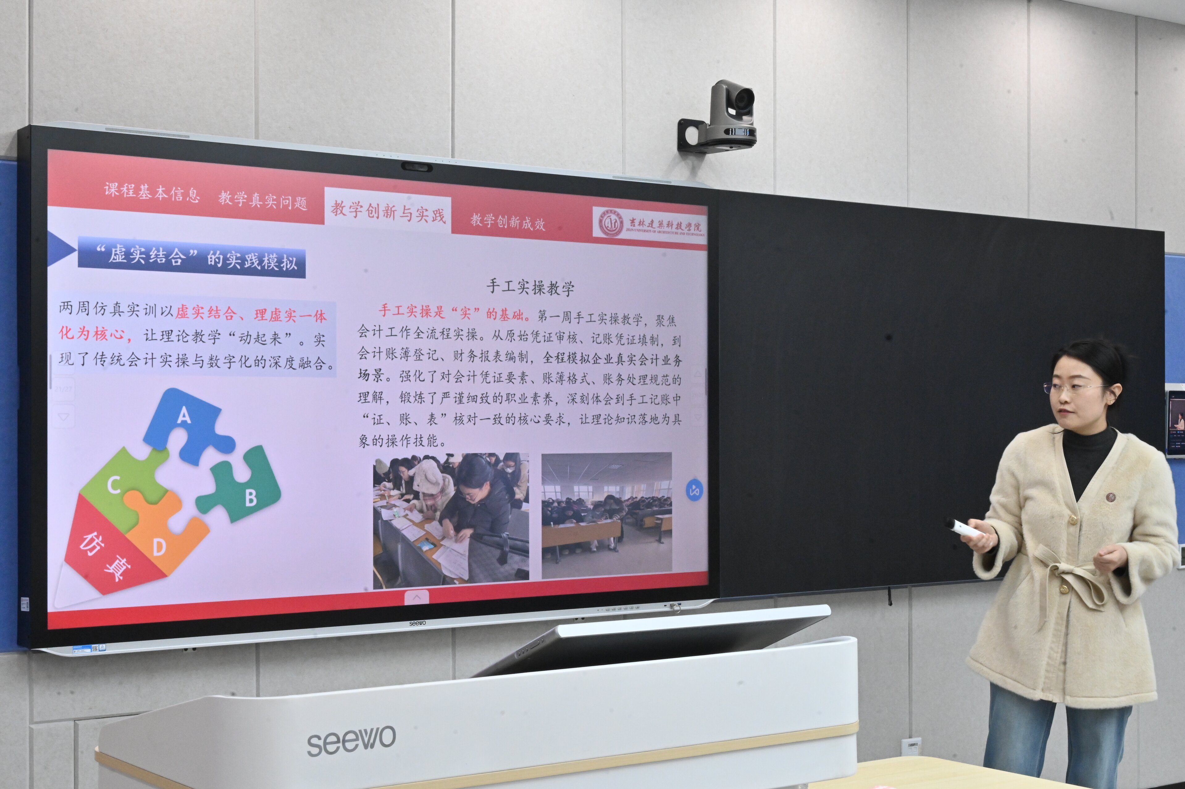 3月6日,学校于现代产业学院智慧教室成功举办了第六届吉林省高校教师教学创新大赛校级决赛。学校纪委书记于倩现场观摩,长春工业大学王红梅教授、吉林建筑科技学院郭秀娟、宋瑞雪担任评委,教师发展中心负责人庄敬宜主持大赛。