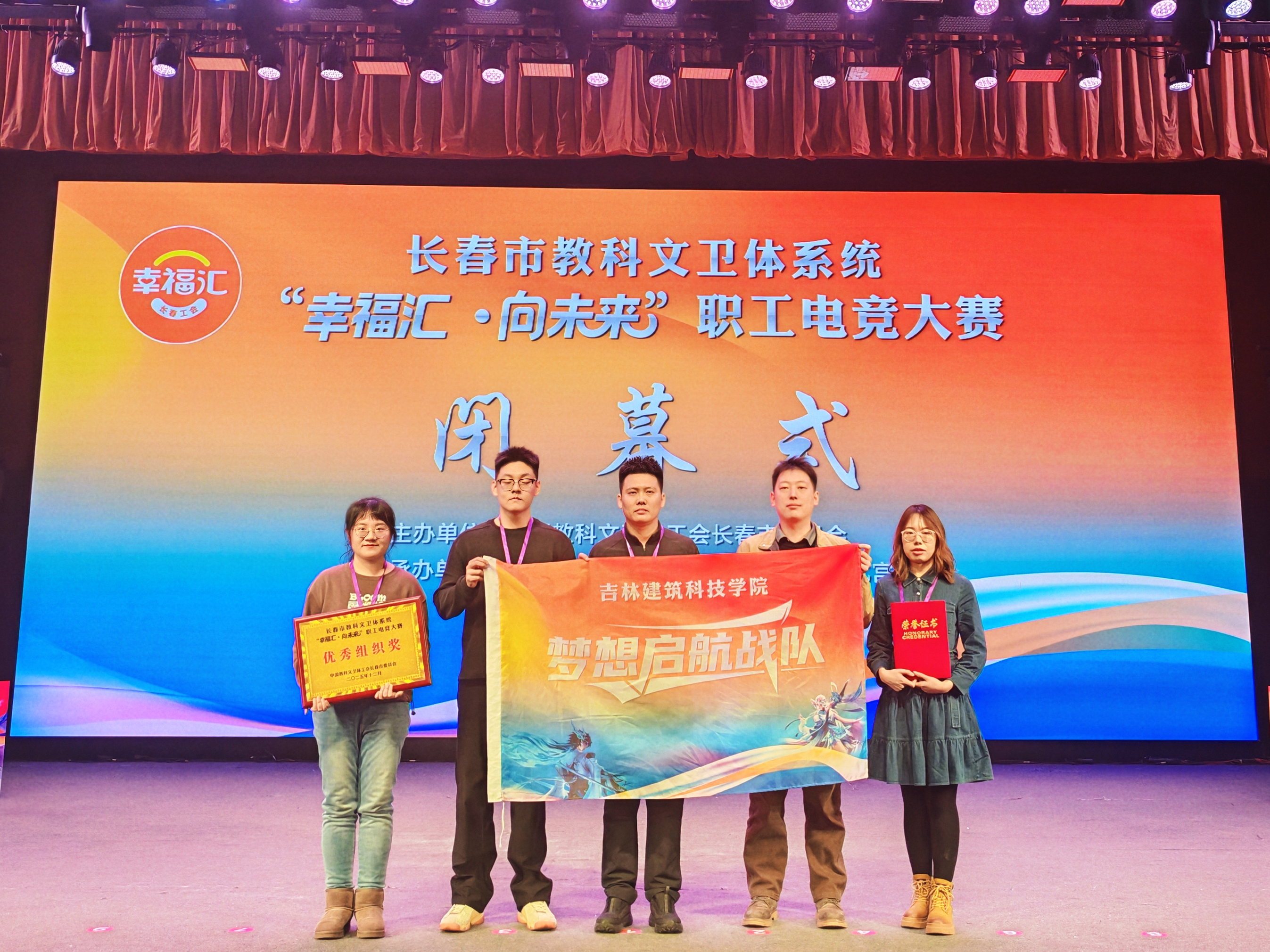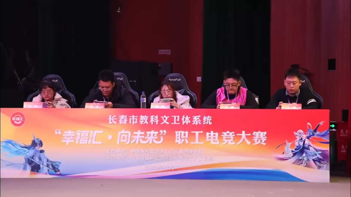 2025年12月10日,由长春市教科文卫体工会主办,长春健康职业学院、长春市工人文化宫承办的“幸福汇·向未来”职工电竞大赛圆满落幕,学校组织三支代表队参赛,最终由我校教职工秦尧、潘春宇、运美汐、陈鸿仁、王源浩组成的“梦想启航队”奋勇拼搏斩获第八名的好成绩,学校获得优秀组织奖。